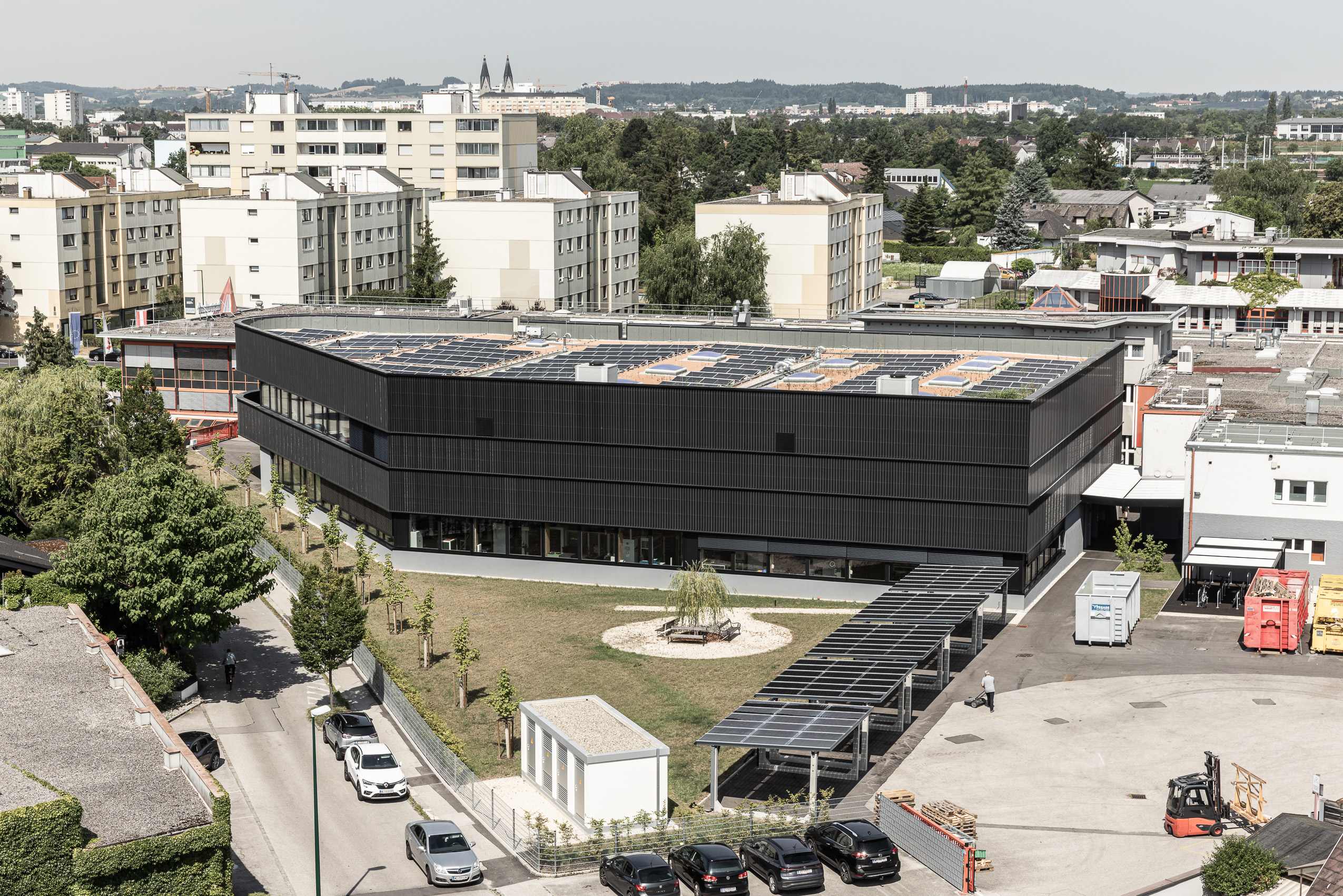 Flachdach Warmdach mit Trapezblech | Dampfsperre und Dämmung mit Mineralwolle | Bitumenabdichtung | Vorgehängte Fassade aus Alu Trapezprofil